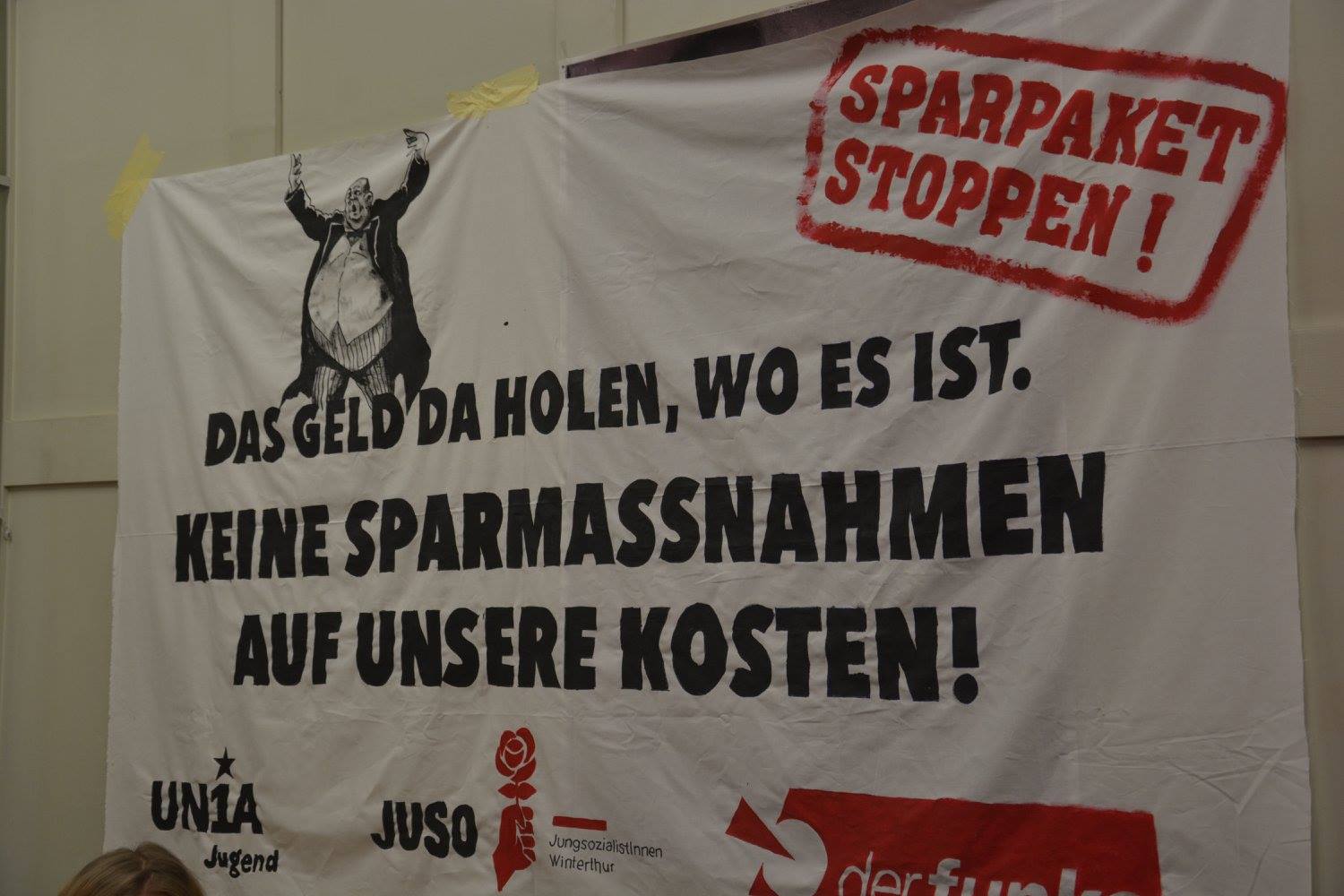 Besonders perfid ist der Versuch, die ArbeiterInnen, die ebenfalls unter Angriffen auf die Arbeitsbedingungen leiden, gegen die öffentlichen Angestellten oder gegen Sozialhilfebeziehenden auszuspielen. Das äussert sich etwa darin, dass der Berner SVP-Grossrat Ueli Studer als Begründung für den neuen Angriff auf die Sozialhilfe aussagte: «Es gibt genügend Leute, die arbeiten den ganzen Tag lang, ohne zu jammern, und Ende Monat haben sie doch weniger in der Tasche als ein Sozialhilfeempfänger.» Abgesehen davon, dass Studer damit die äusserst prekäre Situation vieler Lohnabhängigen zugibt, müssen wir dem klar entgegenhalten, dass es dieselbe herrschende Klasse ist, die sowohl die Löhne drückt und die Arbeitszeiten erhöht, als auch die Sozialwerke angreift! Die Industriellen, die den Frankenschock als Vorwand für Angriffe benutzen und die SVP-lerInnen, welche Sparprogramme durchdrücken, stehen auf der gleichen Seite. Es ist wichtig, dass wir auf der anderen Seite die Arbeitenden in der Industrie, die Angestellten des öffentlichen Dienstes, Schülerinnen und Schüler sowie die Sozialhilfeabhängigen ebenfalls vereinen.