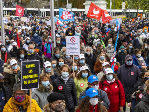 «Von März bis Juni hat man uns applaudiert, jetzt kürzen sie uns die Löhne», schreit eine Pflegerin erzürnt ins Mikrofon am Genfer Place Neuve, wo sich am 15. Oktober 6000 öffentliche Angestellte, vor allem LehrerInnen und Pflegepersonal, versammeln. Die Menge applaudiert, alle teilen ihre Wut. Wut gegen den Genfer Staatsrat, der allen Staatsangestellten über die nächsten vier Jahre die Löhne um 6-9% kürzen will. Dies trifft insbesondere die Angestellten des kantonalen Spitalverbands HUG. Seit Beginn der COVID-Pandemie schieben sie regelmässige 60-Stundenschichten. Jetzt ist die zweite Welle da und die PflegerInnen sind erschöpft und überarbeitet. Ebenso die LehrerInnen, deren Schulklassen in den letzten Jahren kontinuierlich vergrössert wurden, ohne das bitter nötige Lehrpersonal zu erhöhen. Sie alle haben die Schnauze voll von Sparmassnahmen auf ihrem Rücken.