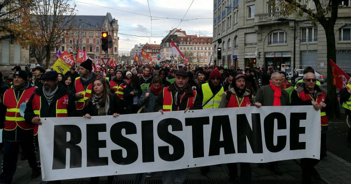 In Marseille wurde eine 80 Jahre alte Frau von einer Tränengasgranate tödlich getroffen, als sie auf ihrem Balkon stand. Ein 20-jähriger Mann liegt nach einem Zusammenstoss mit der Polizei im Koma. Ganz zu schweigen von der Polizeigewalt unter Macron gegen frühere Streiks und Demonstrationen (etwa während der Demonstrationen gegen die Sparpolitik 2017 oder gegen die streikenden EisenbahnerInnen) sowie dem Leid, das durch die Sparpolitik selbst an der französischen Bevölkerung erzeugt wurde. Die „Gelben Westen“ sind der unvermeidliche Ausdruck all der Frustration und der Empörung, die sich in der französischen Gesellschaft aufgetürmt haben. Jetzt wurde das Fass zum Überlaufen gebracht und diese Stimmung des Zorns richtet sich direkt gegen die Regierung.