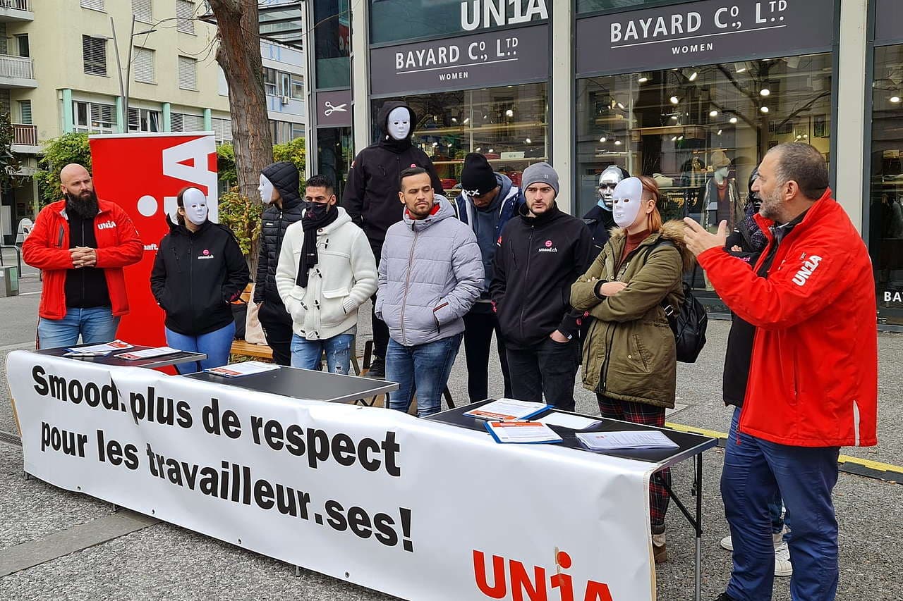 Es gibt noch einen kleinen Unterschied bei den Arbeitsbedingungen zwischen jenen, die direkt bei Smood angestellt sind, und jenen, die beim Subunternehmer Simple Play arbeiten. Letztere sind temporär angestellt und nur die effektive Arbeitszeit wird bezahlt. Sie erhalten also nicht für ihre ganze Schicht Lohn, sondern nur für die Zeit, in der sie tatsächlich ausliefern. Die Streikenden fordern also ebenso, dass auch bei ihnen die ganze Arbeitszeit bezahlt wird.