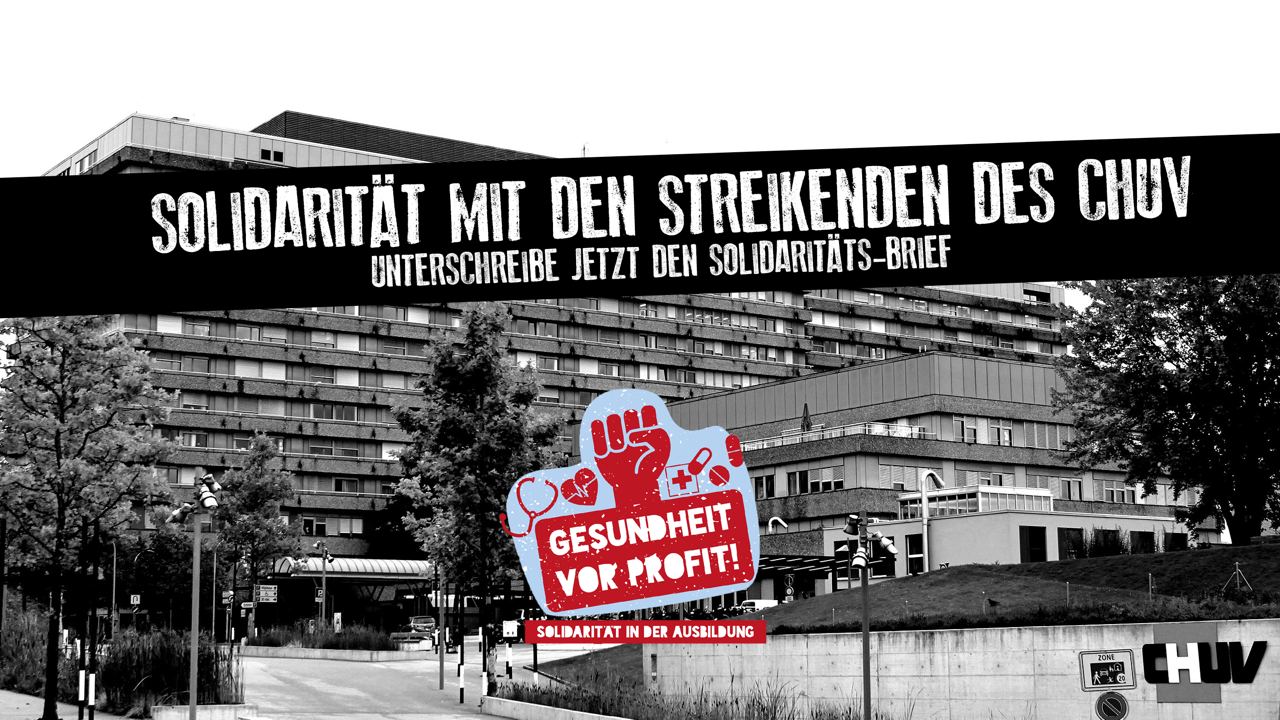 Wir solidarisieren uns aktiv mit den Forderungen und der Streikmassnahme der CHUV-Belegschaft! Konkret heisst das:
