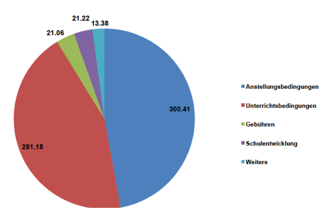 Bei den Anstellungsbedingungen, welche Löhne, Weiterbildung, Pflichtpensen, Altersentlastung und Pensionskassen fassen, wurde und wird mit über 300 Mio. am meisten zusammengestrichen. Den alltäglichen Unterricht selbst betrifft die Kategorie Unterrichtsbedingungen mit den Indikatoren Klassengrösse, Unterrichtsabbau, Klassenentlastung, Förderangebote, Schulsozialarbeit, Schulpsychologie und Spezialklassen (Berufswahlvorbereitungsklassen, Kleinklassen etc.) und Schulschliessungen.  Hier werden über 281 Mio. eingespart. Unter Gebühren sind Lager, Exkursionen Musikunterricht, Lehrmittel zusammengefasst. Unschwer zu erkennen ist, dass bei den Anstellungs- und Unterrichtsbedingungen erbarmungslos gespart wird. Konkrete Abbaumassnahmen einzelner Kantone veranschaulichen den Kurzblick des Abbauwahnsinns.
