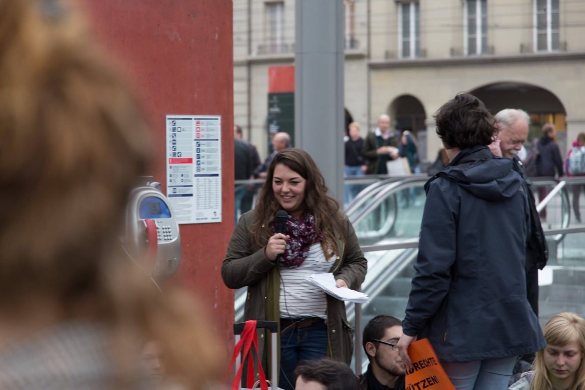 Bild : Tamara bei einer Protestaktion gegen die neue Demo-Kosten-Regelung in Bern