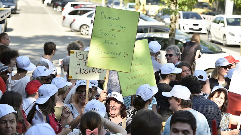 Bild: Streik der Angestellten der Wäscherei am Spital Fribourg ©SSP (Eric Roset)