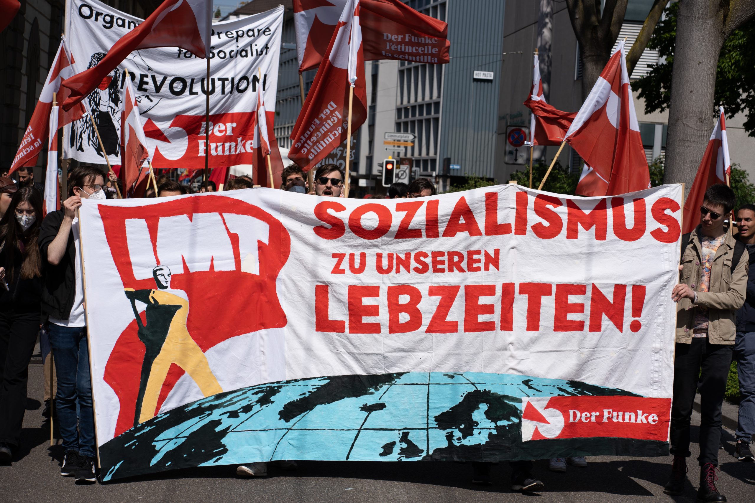 Als MarxistInnen haben wir klare Perspektiven (siehe Schweizer Perspektiven). Wir studieren vergangene Klassenkämpfe und wollen verstehen, wie die Welt funktioniert. Daraus schliessen wir, was der richtige Weg vorwärts ist. Die Krisen des Kapitalismus haben Auswirkungen auf das Bewusstsein der ArbeiterInnen und diese lassen sich nicht alles gefallen. Wir sehen eine grosse Streikwelle in der USA oder Aufstände z.B. in Kasachstan oder Sri Lanka. Deshalb ist der einzig korrekte Schluss, den wir ziehen können: “Sozialismus zu unseren Lebzeiten!” Am 1. Mai brachten wir diesen Slogan in allen Landesteilen und in allen Sprachen auf die Strasse mit dem Ziel, die revolutionären Kräfte aufzubauen.