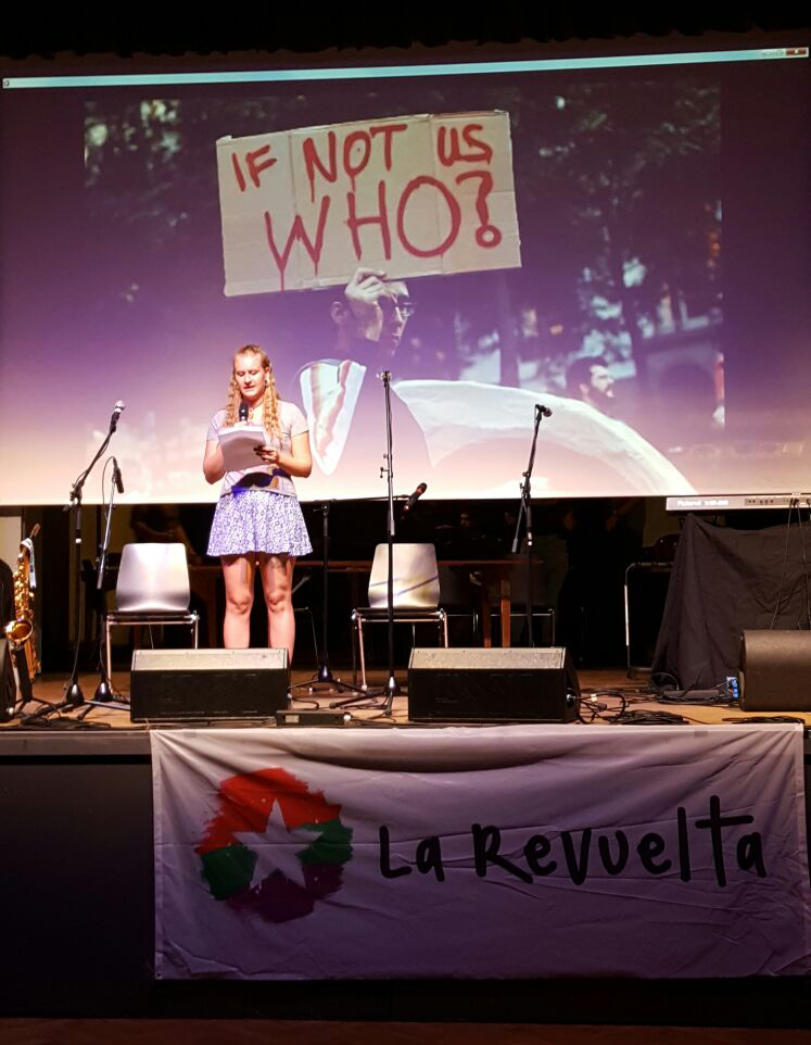 Anschliessend gab es einen politischen Teil, in welchem zuerst zwei junge Frauen von La Revuelta eine Rede auf Deutsch und Französisch hielten.