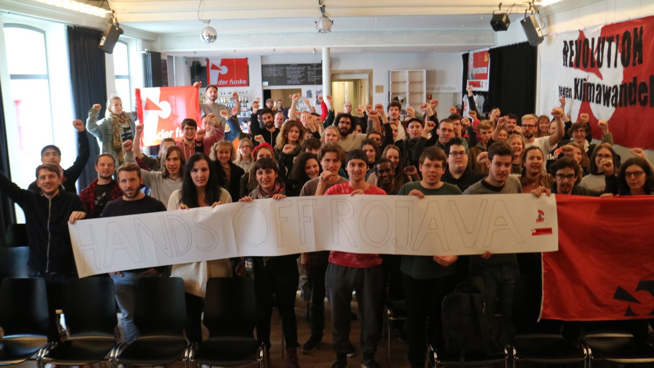 Über diesen Zusammenhang verschiedenster sozialer Kämpfe weltweit und der Krise der kapitalistischen Weltwirtschaft referierte ein Genosse unserer italienischen Schwesterorganisation “Rivoluzione”. Dabei zeigte er die Ursprünge der aktuellen revolutionären Bewegung in Ecuador, dem barbarischen Invasionskrieg der Türkei in Rojava (Kurdisch-Nordsyrien) oder der aktuellen Protestbewegung für nationale Selbstbestimmung in Katalonien auf. Klar wurde: In all diesen Kämpfen stehen sich die herrschende Klasse und die unterdrückte Klasse gegenüber, in ihnen manifestieren sich sowohl die bröckelnde bürgerliche Herrschaft, als auch die Radikalisierung der unterdrückten Massen. In letzter Instanz finden sie ihren gemeinsamen Ursprung in der Krise des Kapitalismus, die seit 2008 das bestimmende Element der Weltwirtschaft sowie Ursache zunehmender politischer Polarisierung und sozialer Instabilität weltweit ist.