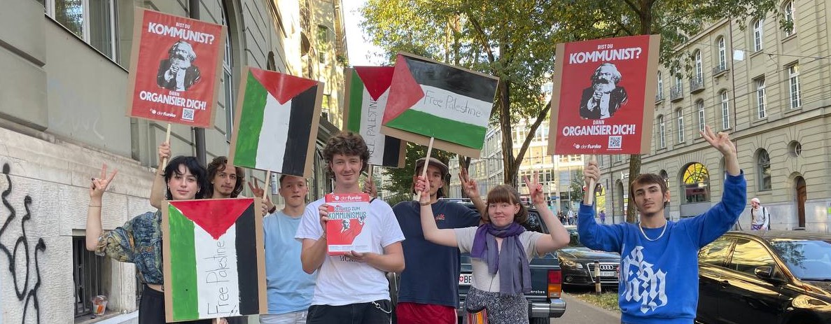 Unsere Solidarität ist klar und bedingungslos: Wir verteidigen das Recht der Unterdrückten auf Widerstand – 365 Tage im Jahr! Unsere Aufgabe in der Schweiz ist es, den Zynismus der herrschenden Klasse aufzudecken. Zu erklären, wieso sie die Demos der Palästinenser verbieten, jegliche Israelkritik als Antisemitismus abstempeln und jede Solidarität mit Palästina als Terrorismus- und Hamas-Verteidigung verleumden. Die Schweizer herrschende Klasse hat Blut an den Händen, weil sie ihre politischen und ökonomischen Verbündeten in Israel decken. Damit machen sie sich mitschuldig an den Toten in Gaza. Sie opfern die Palästinenser für ihre imperialistischen, ökonomischen Interessen, weil sie eine kleine Minderheit, die der Kapitalisten, repräsentieren.