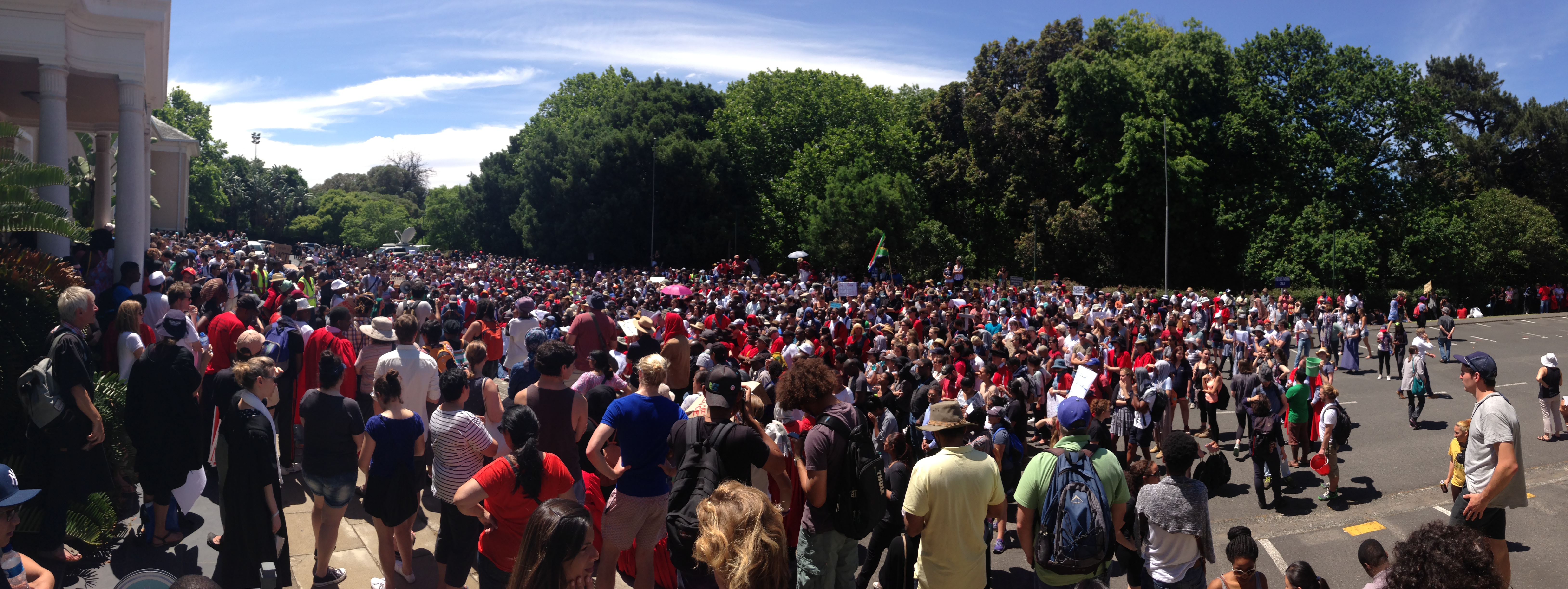 Die Proteste ziehen sich bereits mehr als ein Jahr hin. Der konkrete Auslöser war der Plan der Regierung, die Studiengebühren erhöhen zu wollen. Damals besetzten StudentInnen das Parlament in Kapstadt und den Hauptsitz des ANC in Johannesburg. Präsident Jacob Zuma sah sich gezwungen, die geplante Erhöhung auszusetzen. Doch seine Rechnung ging nicht auf, die Proteste klangen nicht ab, sondern gingen trotz dieses Zugeständnisses der Regierung weiter. Die Bewegung stellt sich seither nicht mehr nur gegen höhere Studiengebühren, die von der Regierung Zuma weiterhin für notwendig erachtet werden, vielmehr kämpft sie nun für ein frei zugängliches Bildungssystem.