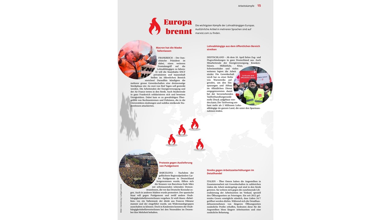 Die wichtigsten Kämpfe der Lohnabhängigen Europas. Ausführliche Artikel in mehreren Sprachen sind auf marxist.com zu finden.