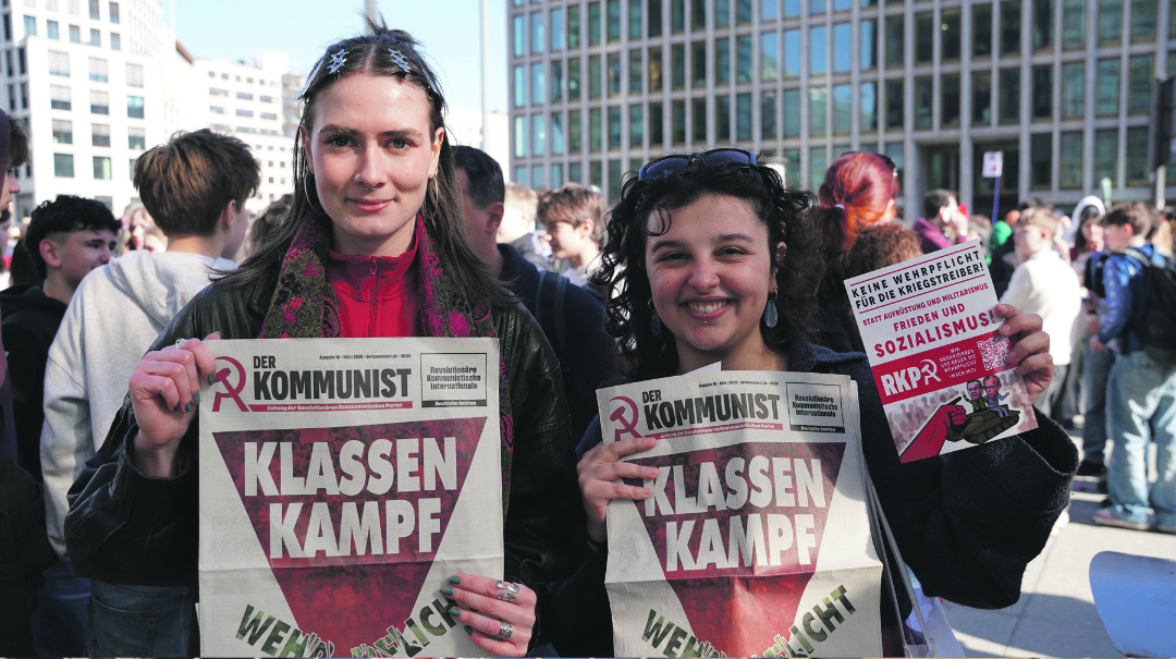 Die Militarisierung beschäftigt die Jungen sehr. In den Schulen kam die Bundeswehr vorbei, um zu erklären, warum es wichtig wäre, dass sich der deutsche Staat verteidigen könne. Das verunsichert: Die Schüler haben Angst, in den Krieg zu müssen. Die Propaganda der Herrschenden in unserem Land sagt, Russland sei eine akute Bedrohung. Es ist bemerkenswert, dass dennoch über 60 %der jungen Leute die Wehrpflicht ablehnen. Nur etwa 14 % würden aktiv Dienst machen. Die herrschende Klasse schafft es nicht, ihre Ideologie durchzusetzen.