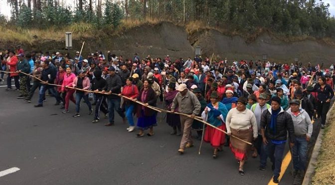 In anderen Städten haben sich Polizei und Armee zurückgezogen und konnten die Straßensperren nicht aufheben. Es gibt Bilder von Polizisten, die ursprünglich geschickt wurden um die Bewegung zu unterdrücken, die aber letztendlich die Kolonnen der indigenen Bauern und Bäuerinnen auf ihrem Weg in die Hauptstadt Quito eskortieren. Einige einfache Soldaten scheinen mit den Protesten ihrer Geschwister, Frauen und Mütter zu sympathisieren. Andere werden entschieden haben, dass es keinen Sinn macht, bei dem Versuch die Regierung zu verteidigen, angegriffen zu werden. Obwohl dies noch Einzelfälle sind, sind sie dennoch von großer Bedeutung.