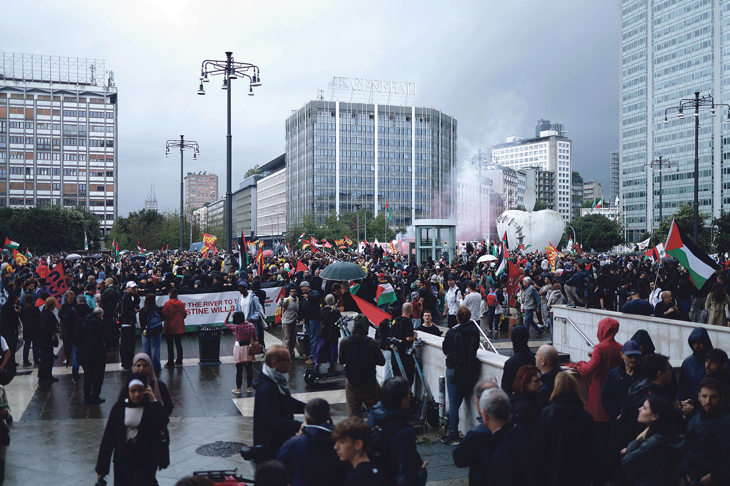 Seitdem gab es keine nennenswerten Mobilisierungen. Doch Monat für Monat wuchsen Grauen und Wut über den Genozid. Der Widerstand gegen das Massaker zeigte sich in allen Bereichen der Gesellschaft immer häufiger: in Schulen, Universitäten, aber auch im Sport, Kino – wie jüngst beim Filmfestival in Venedig – und in den sozialen Medien. Palästina-Flaggen erschienen bei verschiedensten Demonstrationen und auf vielen Balkonen. Die gesellschaftliche Spannung musste früher oder später explodieren.