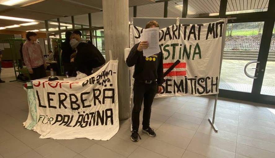 Im Dezember wollten wir am Gymnasium Lerbermatt auf unsere Palästina-Kundgebung mobilisieren. Ich wurde deshalb von einem Geschichtslehrer als Antisemitin bezeichnet und musste zur Schulleitung. Während der Diskussion ist der Schulleiter eingeknickt. Er stimmte mir zu, dass der Vernichtungskrieg Israels Solidarität mit Palästina verlangt. Er hat uns erlaubt, Plakate anzubringen und pro-palästinensische Aktionen zu veranstalten.