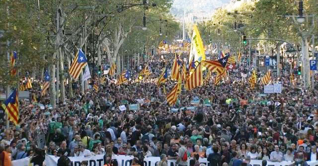 Die Demonstration am 22. Oktober war gigantisch. Züge nach Barcelona waren gestopft voll und die gesamte Demo-Route war bereits vor Beginn mit Menschen gefüllt. Die Stimmung war zornig und trotzig. Eine bedeutsame Anzahl politischer Führungspersönlichkeiten, die gegen die Unabhängigkeit sind und auch gegen eine einseitige Verkündung der Unabhängigkeit seitens Kataloniens argumentiert haben, nahm dennoch an der Demonstration teil.