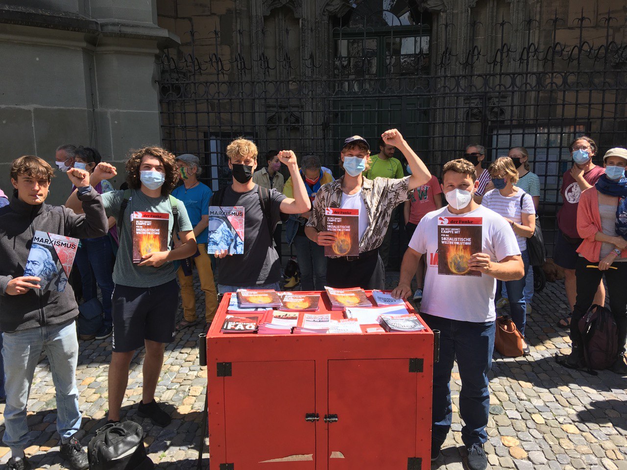 Als Abschluss der Rise Up For Change-Aktionswoche fand am Freitag, dem 6. August nach längerer Pause wieder einmal eine Kundgebung der Klimagerechtigkeitsbewegung statt. Zwischen 1’000 und 1’500 Menschen versammelten sich unter dem Motto «fossil banks are stoppable – another world is possible» auf dem Münsterplatz in Bern. Mit dem Fokus auf die Schweizerische Nationalbank und dem Finanzplatz Schweiz wurde richtigerweise der Dreh- und Angelpunkt der profitorientierten Marktwirtschaft als Treiber von Klimakrise, Unterdrückung und Ausbeutung herausgestrichen und an den Pranger gestellt.