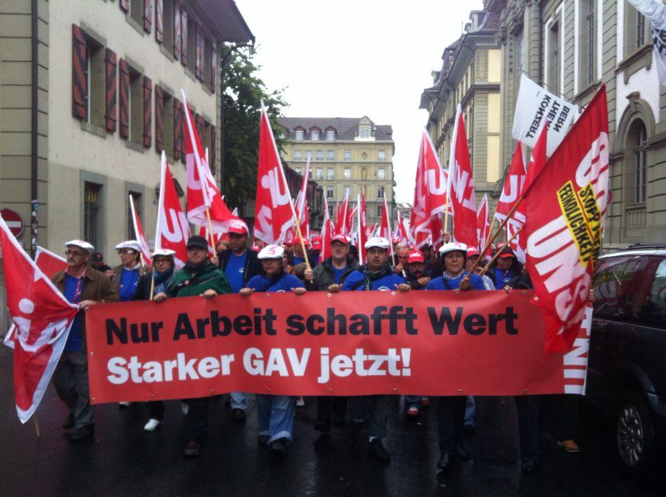 Bestes Beispiel dafür ist die Entwicklung des Kampfes um den MEM-GAV. Dieser läuft Ende Juni dieses Jahres aus. Nach der Demo vom 22. September letzten Jahres, welche mit 5’000 Menschen die grösste IndustriearbeiterInnendemonstration seit langem war, hört man nun nichts mehr. Dabei verabschiedeten die Industriedelegierten Forderungen, um welche durchaus Mobilisierungen organisiert werden könnten. Das streichen des Krisenartikel 57, welcher Arbeitszeiterhöhungen zulässt, die GAV-Unterstellung von Lehrlingen und Temporären, Anschlussgarantie für Lehrlinge, Kündigungsschutz für gewerkschaftliche Vertrauensleute, all dies sind wichtige Forderungen, welche wir vollauf unterstützen. Diese Forderungen ohne mobilisierte ArbeiterInnenbewegung durchzusetzen, ist jedoch angesichts der objektiven Bedingungen unmöglich. Seit September wurden nun auch keinerlei Informationen betreffend Stand der Verhandlungen zum MEM-GAV mehr rausgegeben. Die ArbeiterInnen sind mehr als blosse Manövriermasse der Bürokratie, welche diese punktuell in Bewegung setzen kann. Geheimverhandlungen sind inakzeptabel und widersprechen einer demokratischen Gewerkschaft.