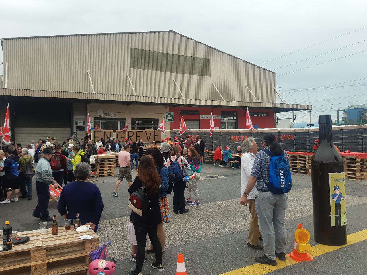 Wie immer in solchen Situationen, bewiesen die Arbeiter ihre Kreativität. Da der Schmelzofen nicht einfach abgestellt werden kann, produzierten sie defekte Flaschen, um den Verkauf zu verhindern und die Kapitalisten um ihren Gewinn zu bringen. Es ist die grundlegendste Lektion: Konfrontiert mit den Angriffen der Bosse, haben die Arbeiter immer einen Weg, gemeinsam zurückzuschlagen. Im Wissen, dass es breiteren Druck braucht, appellierten sie auch an die Solidarität in der Bevölkerung. Das führte zu einem Marsch mit 700 Teilnehmenden im Städtchen von Saint-Prex.