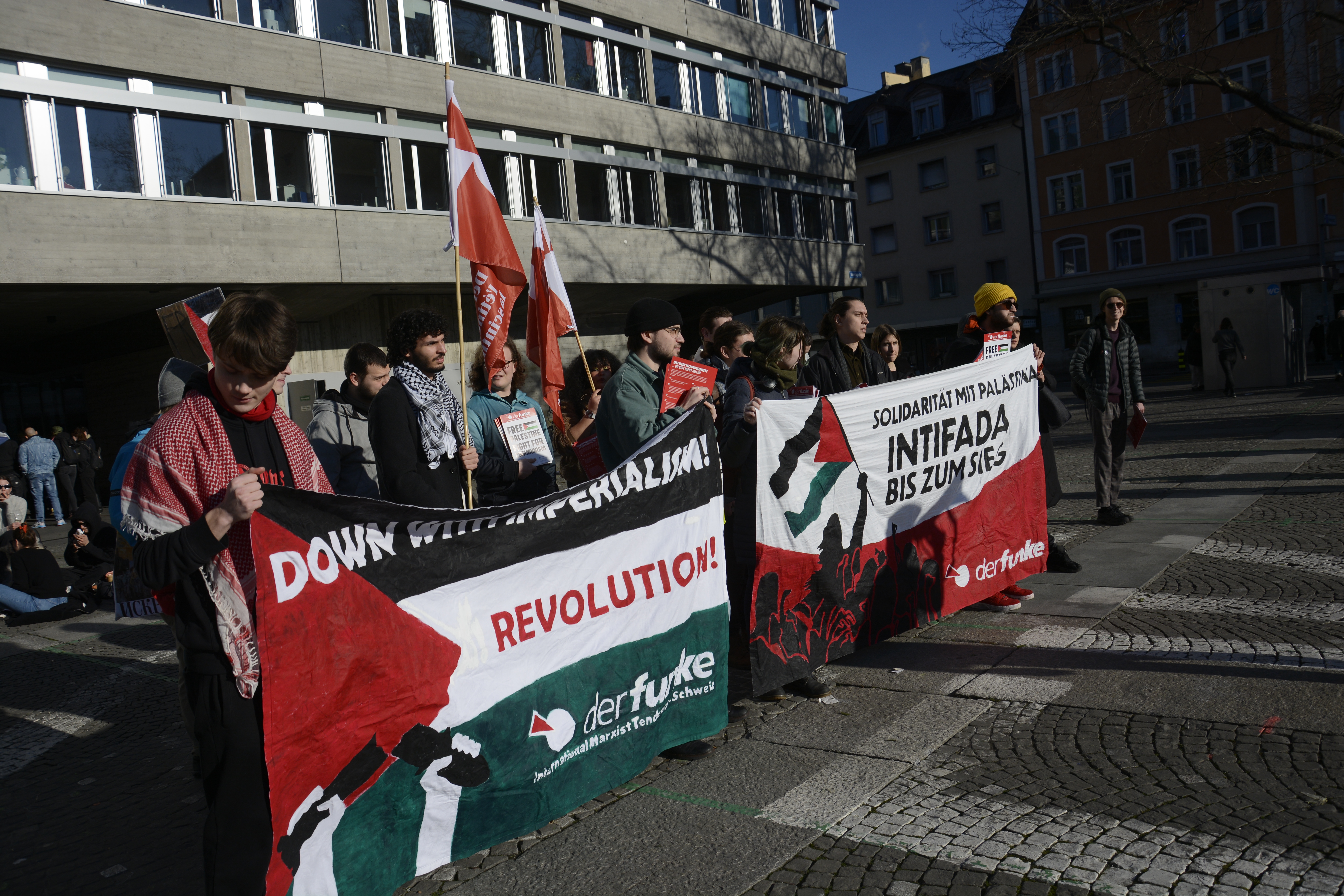 Als Kommunisten nehmen wir konsequent den revolutionären Standpunkt der Arbeiterklasse ein. Seit Monaten bombardiert der israelische Staat auf brutalste Art und Weise den Gazastreifen. Wir haben uns als einzige in der Linken von Anfang an konsequent auf die Seite des unterdrückten palästinensischen Volkes gesetzt. Dafür starteten die bürgerlichen Medien eine Hetzkampagne gegen uns. Die Universität Zürich entzog den Marxistischen Studierenden einen Raum für eine Solidaritätsveranstaltung und stattdessen tauchte die Polizei mit mehreren Kastenwagen auf. Wir lassen uns von solchen Angriffen nicht einschüchtern, wir gehen in die Offensive. Das Büro ist ein Teil dieser Offensive.