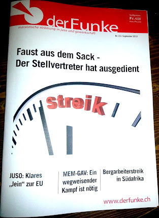 Sei es nun in der Schweiz oder in Griechenland; die kapitalistische Krise erzwingt das Aufeinanderprallen der Interessen der Mehrheit, hauptsächlich der Lohnabhängigen, und deren der Besitzenden. Das ist Klassenkampf. Es gilt also nicht still zu erdulden, was die Bonzen in ihrer Profitgier für uns planen, sondern wir müssen unsere Zukunft selbst in die Hand nehmen. Dies geht nur mit kampfbereiten Gewerkschaften und Parteien der Lohnabhängigen.
