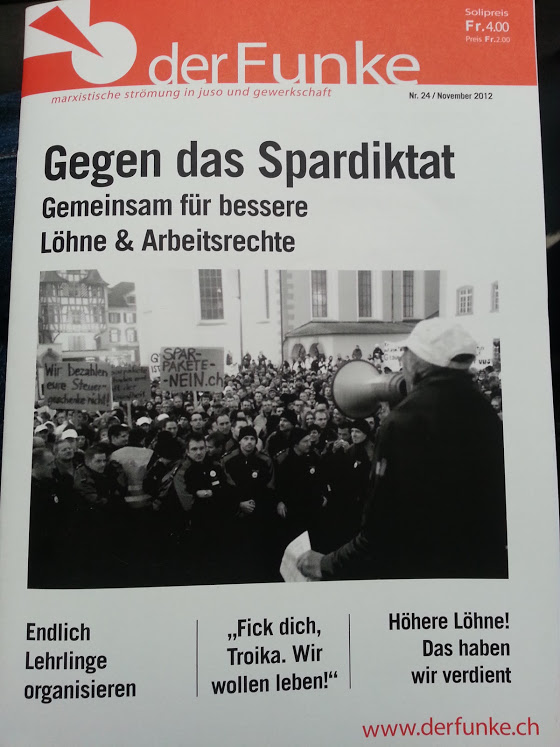 Wer glaubte, die Schweiz sei eine „?Insel“ – und dieser Glauben war auch in der ArbeiterInnenbewegung und er Sozialdemokratie sehr verbreitet – wird zunehmend eines besseren belehrt. Die Schweiz wird von der Krise in naher Zukunft noch wesentlich härter getroffen werden. Das bedeutet für die Lohnabhängigen grösseren Druck, härtere Arbeit, weniger Lohn und verstärkte Zukunftsängste. Dies gilt nicht nur für die Privatwirtschaft. Auch der Druck auf die öffentlich Angestellten steigt in den meisten Kantonen beständig. Unter dem Vorwand der Wirtschaftsförderung wurden in den letzten Jahrzehnten, und besonders seit Ausbruch der Krise, die Steuern für Unternehmen, hohe Löhne und Vermögen massiv gesenkt. Das fehlende Geld muss natürlich kompensiert werden und dies wird durch Sparpakete in allen wichtigen Bereichen der Öffentlichen Leistungen gemacht. Das bedeutet vielerorts für die Angestellten Lohnstop, oder sogar weniger Lohn, und weniger Stellen, also höherer Arbeitsdruck. Einen Tag nach dem europäischen Generalstreik, also am 15. November, fand gegen diese Politik in St. Gallen eine der grössten Demonstrationen der letzten Zeit statt. 5000 Menschen demonstrierten gegen das geplante Sparpaket, welches im November vom Kantonsparlament verabschiedet werden soll. Das Parlament plant unter anderem das Budget für die Berufsschulen zu kürzen, im Gesundheitswesen zu sparen, Kulturelle Angebote abzubauen und die Studiengebühren zu erhöhen. Diese Demonstration ist, bis jetzt, die erste grosse, über einzelne Bereiche hinausgehende Antwort auf die Angriffe der Bürgerlichen und deshalb von unschätzbarem Wert für die ganze Schweiz. Es ist die Antwort, die wir auch in anderen Kantonen und auch national brauchen. Das Parlament wird nun zwar möglicherweise einige Sparmassnahmen fallen lassen, doch im Kern den Forderungen der Protestierenden nicht nachkommen. Deshalb war dies für viele öffentliche Angestellte nicht nur die erste Demonstration, sondern wird möglicherweise, wie auf einem Schild zu lesen war, auch bald der erste Streik.