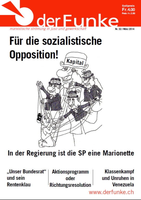 Der Funke trat bereits 2011 in der JUSO für diese Forderung ein und wir stehen auch heute noch voll und ganz für einen sozialistischen Oppositionskurs. Nur für diesen braucht es eben auch ein sozialistisches Programm, welches als Richtschnur im Aufbau einer Oppositionspolitik dienen soll. Wenn nun die GL der JUSO ihren Richtungswechsel mit dem Abstimmungsresultat begründet, dann zeugt dies immerhin von der Fähigkeit, auf Veränderungen der politischen Konstellation zu reagieren. Wir wollen und werden Sommaruga keine Unterstützung in ihren Verhandlungen in Brüssel über das Installieren von Kontingenten zusichern. Wenn der Austritt aus dem Bundesrat jedoch politisch mit der Möglichkeit Richtung EU-Mitgliedschaft zu schreiten gerechtfertigt wird, dann löst das bei uns nur Kopfschütteln aus. Weder taktisch noch politische können wir dieser Forderung irgendetwas abgewinnen. Wie wir des Öfteren dargestellt haben, ist die Forderung einer „sozialen EU“ völlig illusorisch. Im Rahmen des Kapitalismus gibt es keine friedliche und fortschrittlich Europäische Einheit, dazu sind die Interessen der verschiedenen nationalen Bourgeoisien zu unterschiedlich.