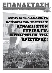 Nach dem Scheitern der Regierungsbildung finden am 17. Juni Neuwahlen statt. Das linke Wahlbündniss SYRIZA gilt als mögliche Wahlsiegerin. Die EU zittert und in ganz Griechenland entstehen Volksversammlungen. Der Vorsitzende von SYRIZA, Alexis Tsipras, spricht von einem Krieg der Völker gegen die Banken.