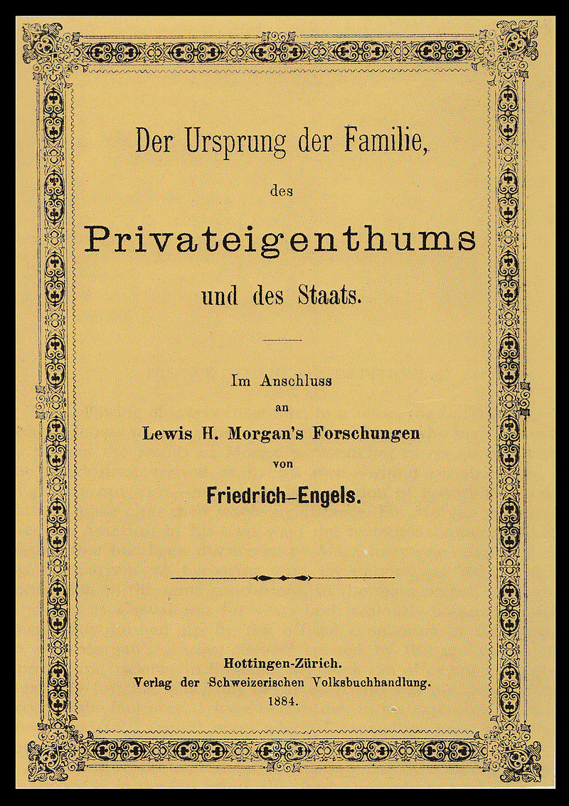 Der Amerikanische Anthropologe Lewis Henry Morgan veröffentlichte 1877 sein Werk „Ancient Society“ (Die Urgesellschaft), das sich mit der Entwicklung menschlicher Gesellschaften auseinandersetzt und zur Grundlage und wichtigster Quelle für Friedrich Engels Klassiker „Der Ursprung der Familie, des Privateigentums und des Staats“ (1884) wurde.