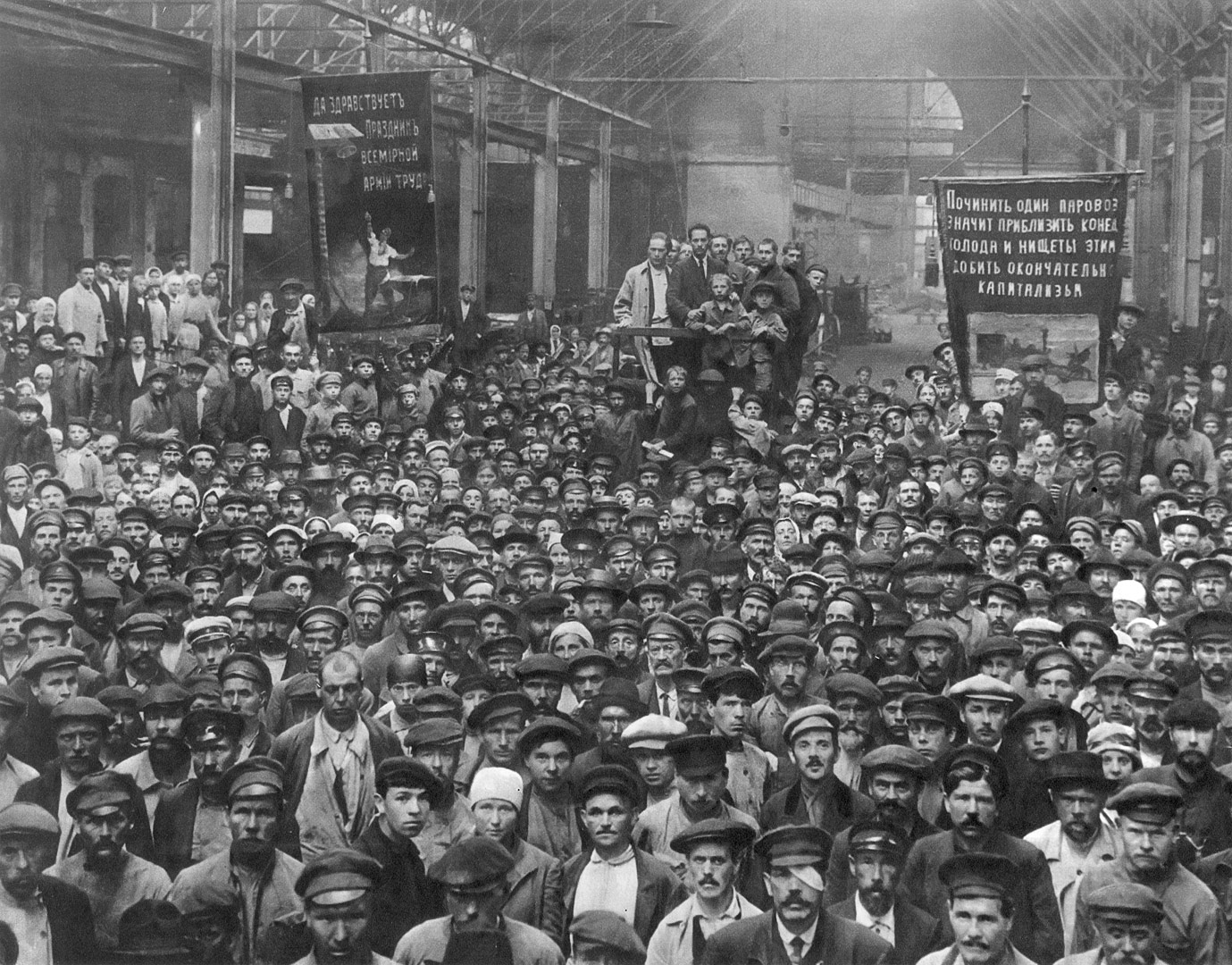 Wir dürfen nicht vergessen, dass während alledem ein ungeheuerlich brutaler Bürgerkrieg wütete. Sowjetrussland wurde von den westlichen Imperialisten unter ein Embargo gesetzt und gezielt ausgehungert. Es herrschten gelinde gesagt unglaublich schwierige Bedingungen, um eine blühende Demokratie zu pflegen (was Liberale scheinbar vom ersten Tag an von der Revolution erwarten). Dennoch waren ArbeiterInnen, abgesehen von sporadischen Verboten und Repressionen anderer Parteien, dazu berechtigt, ihre Fabriken zu verwalten und Delegierte in die Sowjets zu wählen. Und noch immer hatten sie in einem Ausmass Zugriff zu Kommunikationsmitteln und Versammlungen, wie es unter der vorherigen Herrschaft des Privateigentums unmöglich gewesen war.