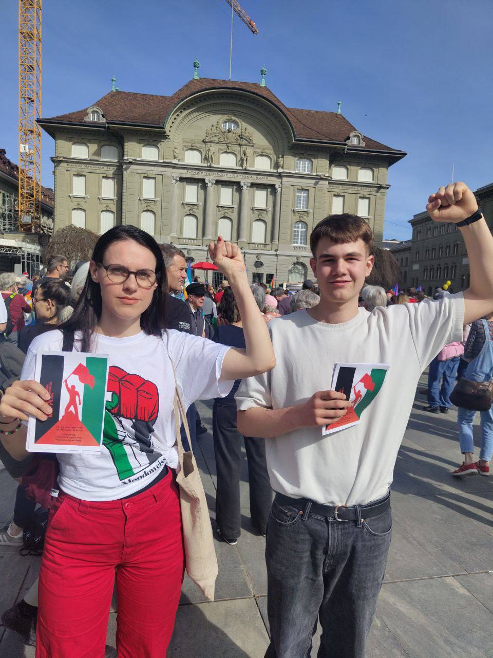 Letzten Samstag gab es in Bern eine Palästina Kundgebung organisiert von Amnesty International, die im Zeichen des “gerechten Friedens in Israel/Palästina” stand. Amnesty International hielt viele Reden, in einer von ihnen gratulierten sie Politikern wie Bill Clinton zur Unterzeichnung eines „Friedensvertrags“. Immer weniger Teilnehmer schenkten ihnen Aufmerksamkeit. Auf dem hinteren Teil des Platzes standen drei arabische Mädchen, die von den linken Sicherheitskräften umringt wurden, weil sie ihr eigenes Schild mitgebracht hatten. Wir haben auch einen Mann getroffen, der aus der Veranstaltung geworfen wurde, weil er ein Schild hatte, das „möglicherweise spalterisch sein könnte“ (auf dem Schild war ein Bild von Netanjahu mit dem Wort Völkermord).