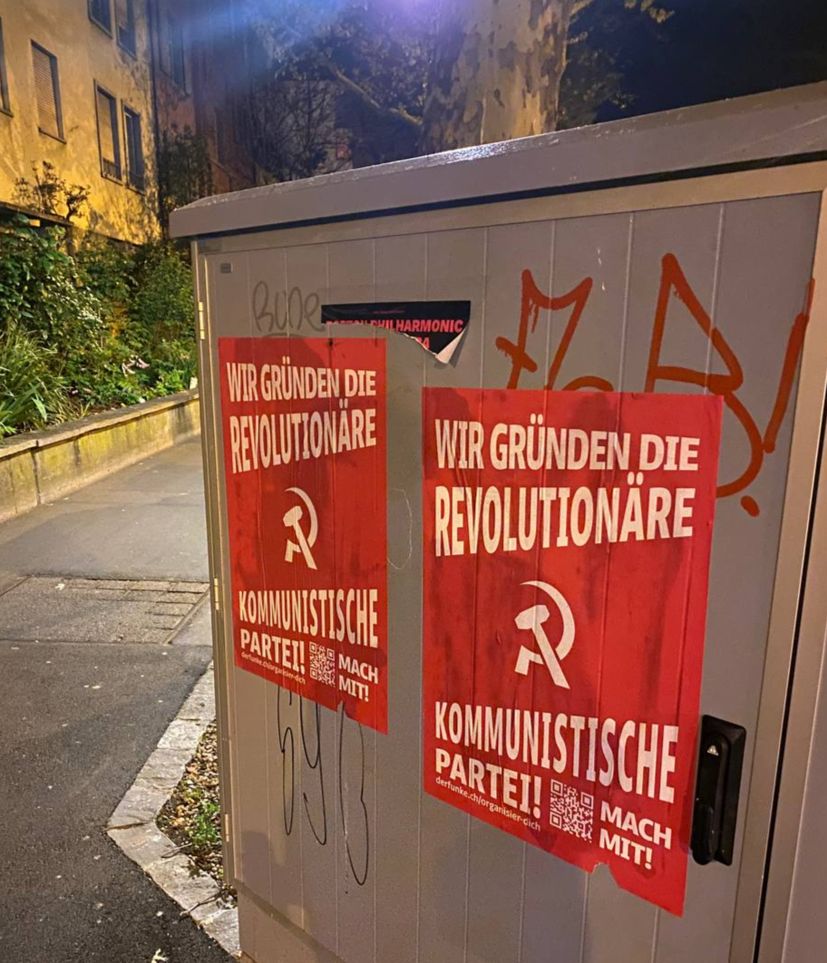Diese Woche war ich mit zwei Genossen Plakate für die RKP aufhängen. Dabei hatten wir eine spontane Unterhaltung mit einem jungen Arbeiter, der „zu 90%“ mit uns einverstanden war. Er habe zwar auch schon ein solches Plakat abgerissen, weil seine Mutter aus Polen komme [er spielte auf den Stalinismus an]. Als wir ihm erklärten, dass die RKP nicht dafür kämpft, einen Boss durch einen Bürokraten zu ersetzen, sondern die Arbeiter im Betrieb, in der ganzen Gesellschaft entscheiden sollen, wurde er hellhörig! Auch Illusionen, dass die Leute mit guten Ideen schon 100x mehr verdienen dürften, konnten wir entkräften, indem wir darüber sprachen, dass Menschen alle möglichen Dinge solidarisch tun ohne überrissenen Gewinn. Und wenn ein Kapitalist im Betrieb versagt ist sein „Risiko“ maximal, Lohnarbeiter zu werden. Den Schaden trägt die Belegschaft. Damit das nicht passiert, braucht es Organisierung im Betrieb. Das machen Mitglieder der RKP. Das Gespräch war recht herzlich und wir tauschten uns über Erfahrungen aus dem Arbeitsalltag aus. Er schenkte uns ein Bier und meinte selbst, er muss sich mehr mit Kommunismus auseinandersetzen und gab uns seine Nummer. Er möchte gerne an die Ortsgruppensitzung kommen. Das hat uns gezeigt, dass Plakate und Sticker ein Echo haben und es auf die wirklichen Antworten drauf ankommt, die wir geben können.